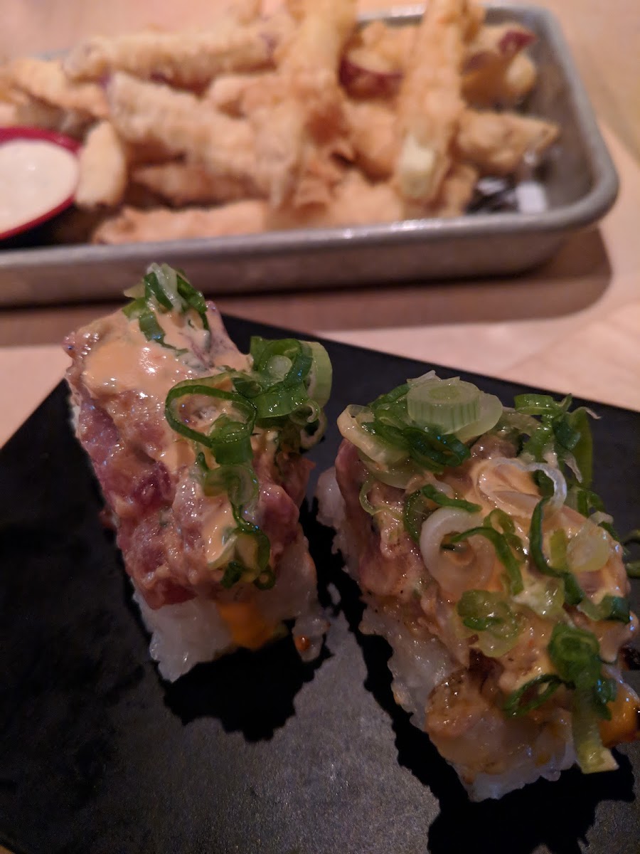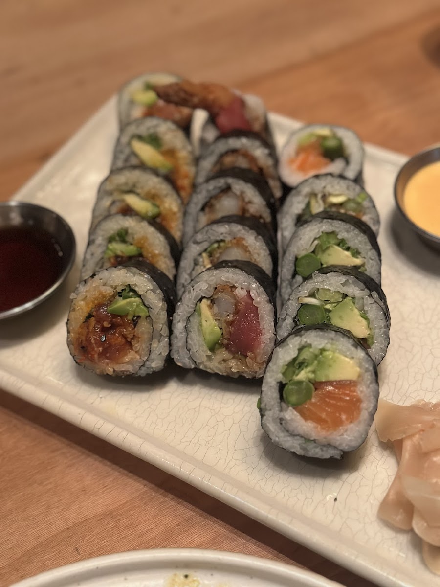Another standout is the Edomae Vegetable Set, which blends seasonal vegetables like slow-roasted tomatoes and asparagus into a harmonious symphony of flavors and textures for $17. For those who prefer seafood, the DLuxe Nigiri, featuring exquisite cuts like unagi and otoro, promises a melt-in-your-mouth experience that will keep you coming back for more. Don’t forget to try the Tempura Shrimp maki, a sensational roll that perfectly balances crispy and creamy elements with its gochujang mayo and tempura crunch.
